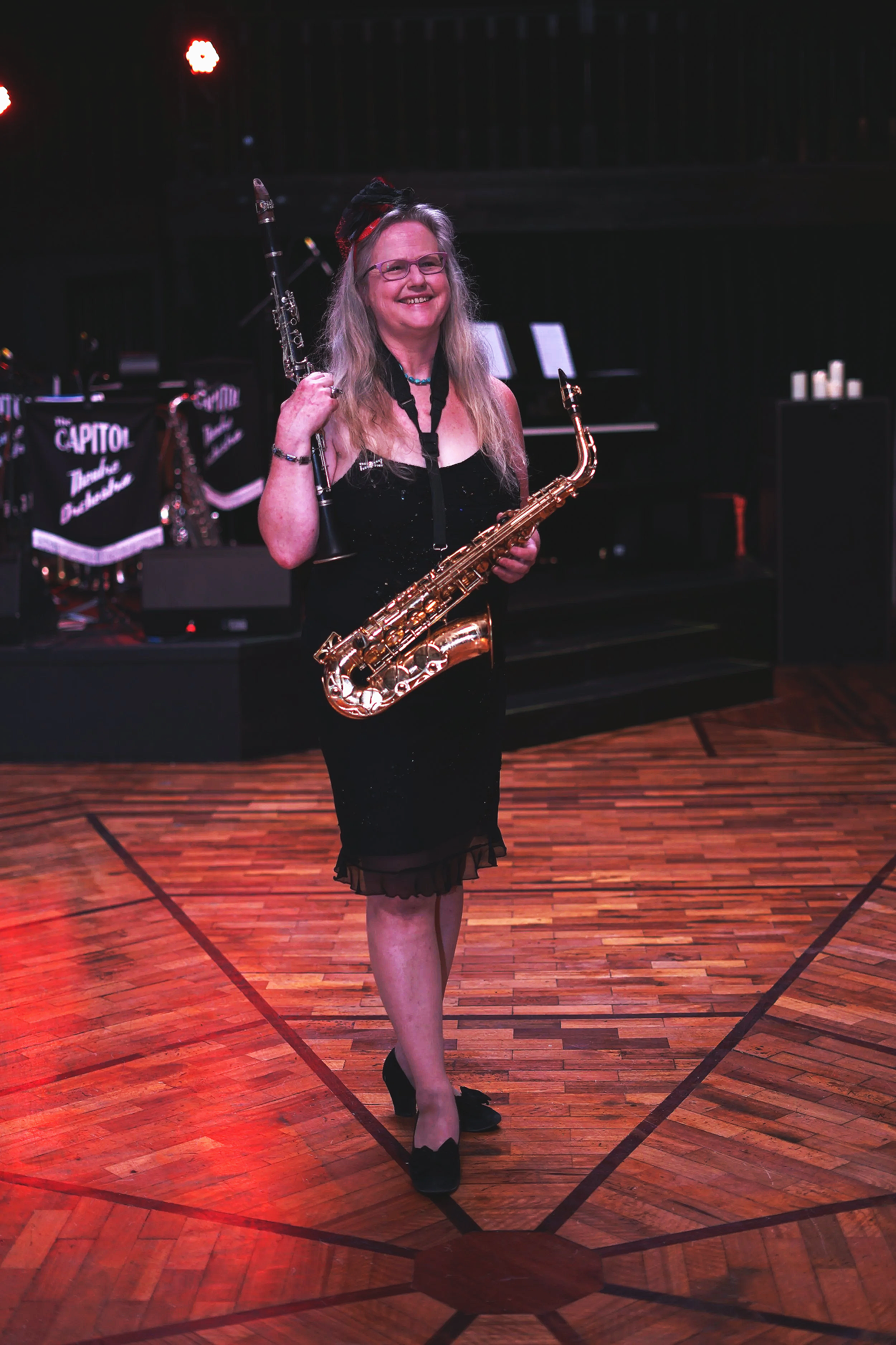 Our standard line-up is 12 musicians: banjo, tuba, drums, piano, trombone, two trumpets, three saxophones and two violins. Some of our musicians are also charismatic singers, featuring as soloists and as the Capitol Orchestra Vocal Trio.